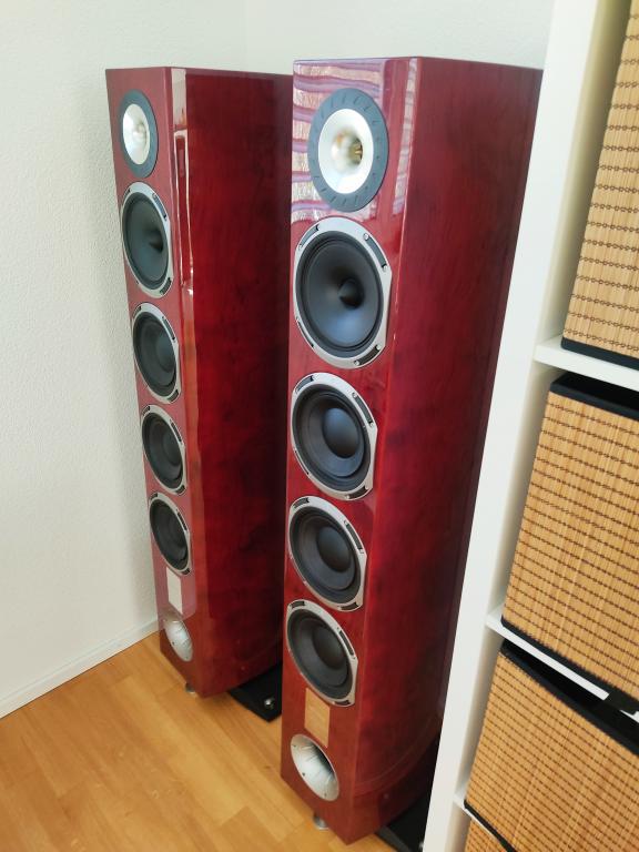 Traumhaft natürlicher, lebendiger, sehr weiträumiger Klang. Der Lautsprecher verfügt zusätzlich über ein nach hinten abstrahlendes Hochtonhorn. Wer mit anpackt, kann den Lautsprecher bei ernsthaftem Interesse bei mir anhören.