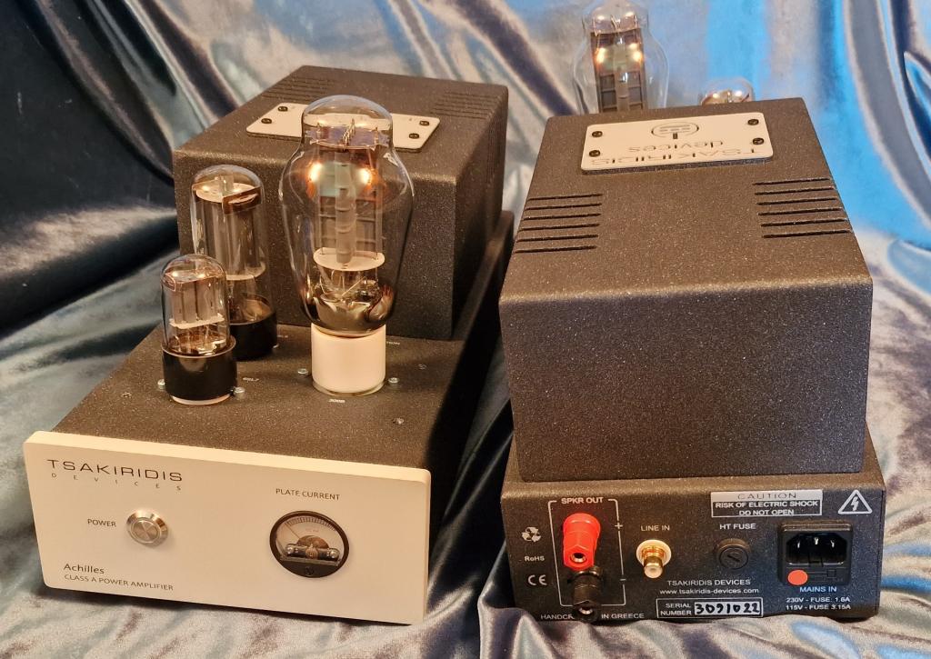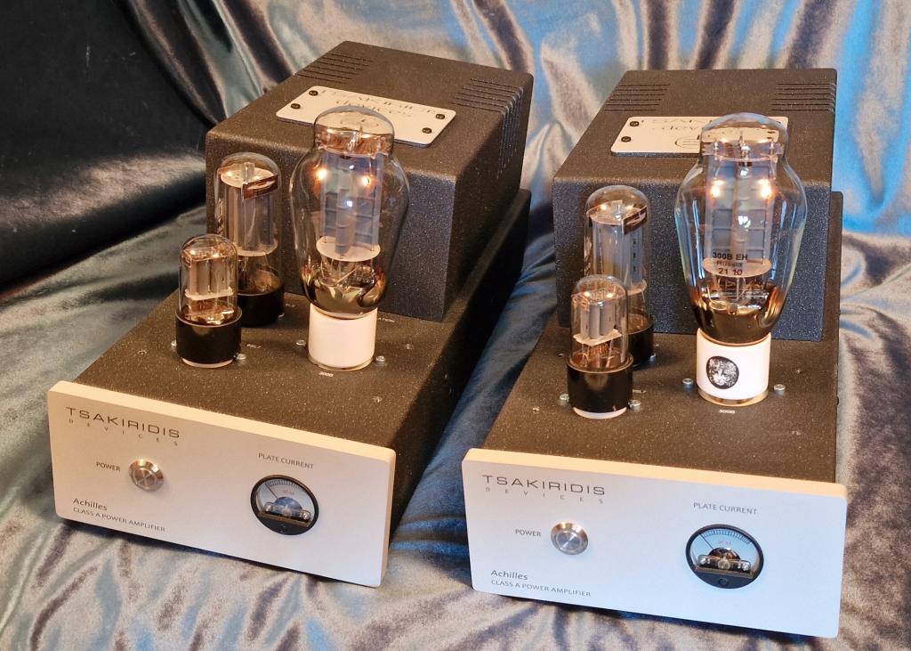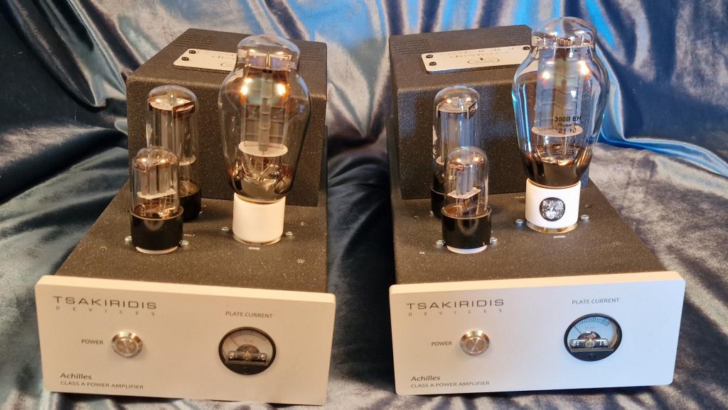 Die Achilles Monoblöcke verstärken mit der legendären 300B Triode und liefern 8 Watt Ausgangsleistung. Die Schaltung ist frei verdrahtet aufgebaut und hat keine Gegenkopplung.