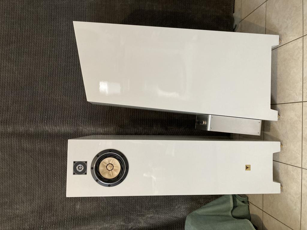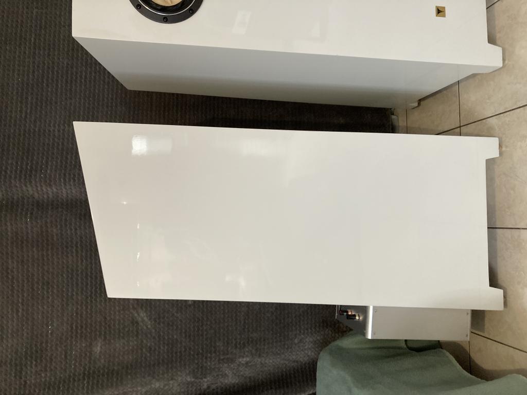 En très bon état esthétique, juste quelques défauts et légères traces d’usure sur la laque blanche au niveau de certains coins et des pieds, les haut-parleurs sont en parfait état aucunes traces d’usure et les enceintes fonctionnent parfaitement .