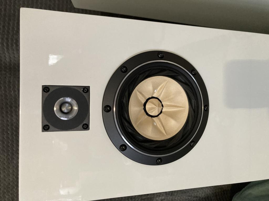 Haut-parleur large bande de 6,5 pouces de haute qualité pour les basses et moyennes fréquences mis à niveau en interne, super tweeter chargé en cornet avec assemblage magnétique AlNiCo et diaphragme en titane pour les hautes fréquences.