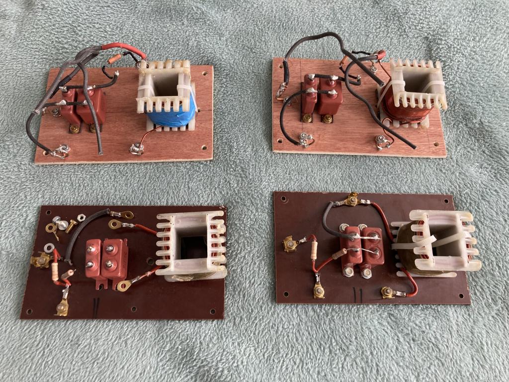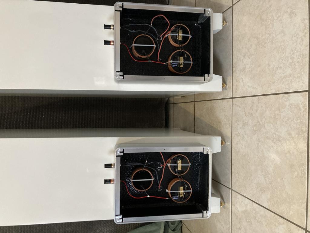 Les filtres des enceintes ont été modifiés, en respectant à l’original le schéma électronique et les valeurs des composants électroniques, par des composants très haut de gamme, ce qu’il se fait de mieux pour l’audio , condensateurs et inductances de la célèbre marque "Duelund", Résistances d’une marque japonaise réputée "Shinkoh" , borniers de la très bonne marque "Eti" les BP-20C en cuivre pur plaqué or, le tous montés proprement dans un boîtier en aluminium de qualité, pour isoler des interférences, amorti par des plaques de goudron et fixé à l’arrière des enceintes au plus loin des interférences des haut-parleurs .