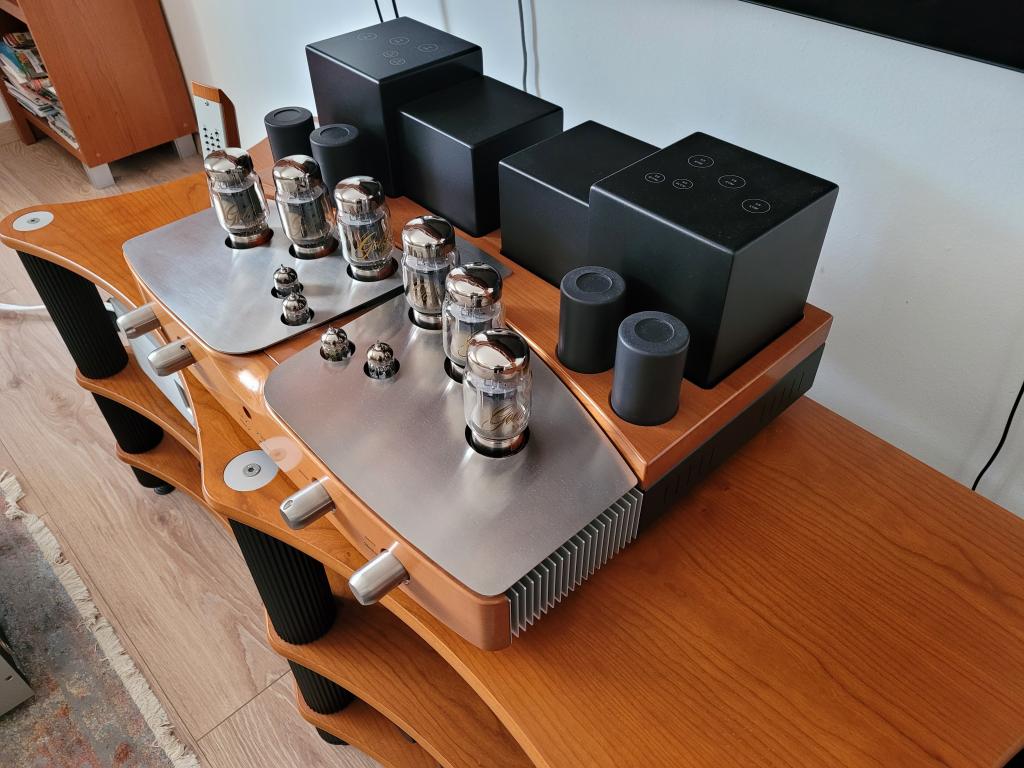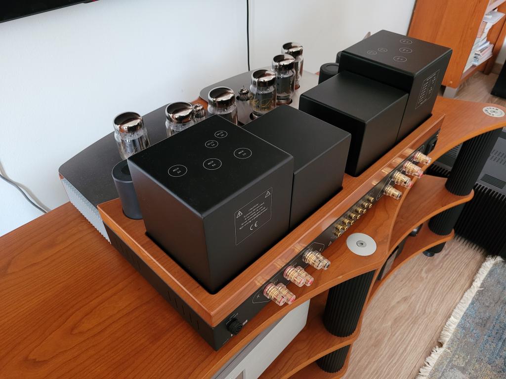 Unison Research Performance with Anniversary upgrade (carried out by German T.A.D., certificate is included) in mint condition with few hours used Gold Lion tubes is for sale. Remote, power cable and all documentation are included. The amplifier works perfectly, no hum, no noise, no weird things during operation. All the Gold Lion tubes are fresh, they are not even fully in burned in. What'sApp video presentation is possible as well as the personal pick up too, I'm ready to travel to any Hungarian border.