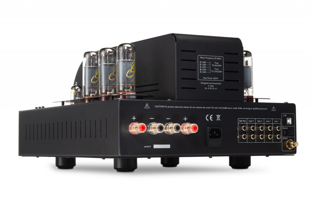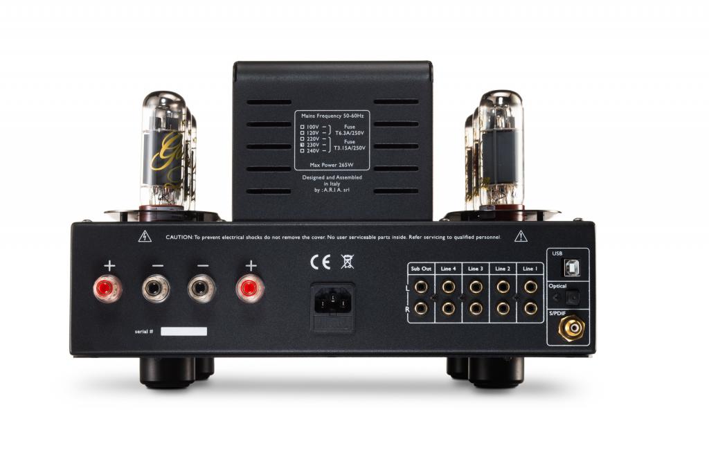 • Zusätzlich zu den 4 analogen Eingängen verfügt der Verstärker über den neuen DAC3, der 3 weitere digitale Eingänge bietet: USB (PCM bis zu 384kHz, DSD nativ bis zu 256x und DoP bis zu 128x), Toslink und S/PDIF bis zu 192kHz als Standard