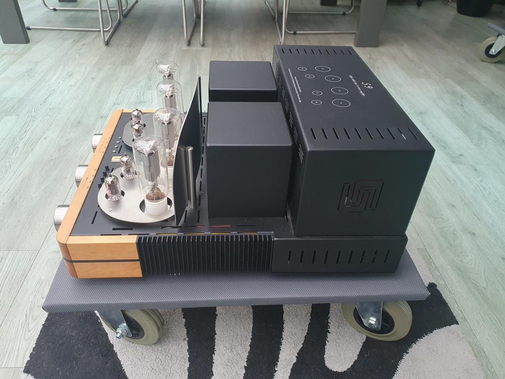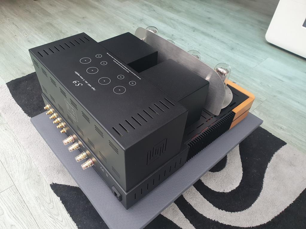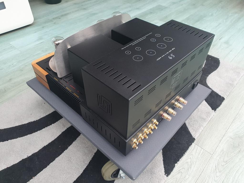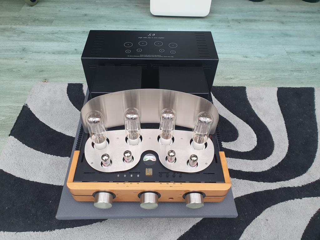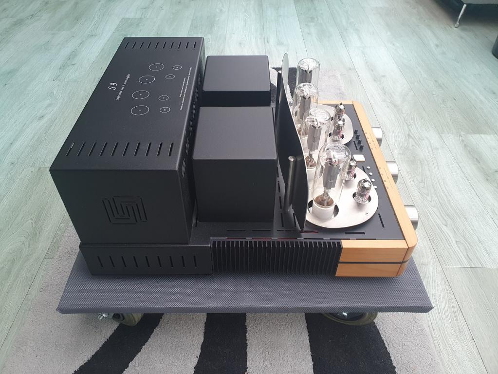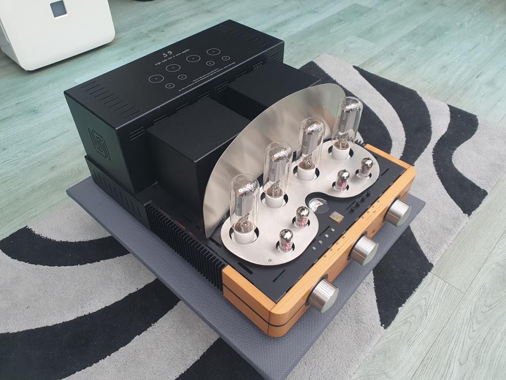 Ein wunderschöner Single-Ended-Triodenverstärker der Klasse A, der in Kombination mit relativ empfindlichen Lautsprechern eine unglaublich hohe Leistung bringt. Mit einem Gewicht von 50 kg entspricht der S9 den höchsten Standards. Er verwendet zwei SV572- und vier ECC82-Röhren und liefert 2 x 35 W.