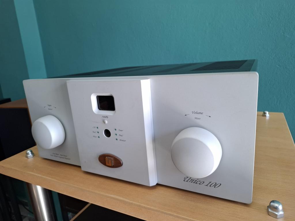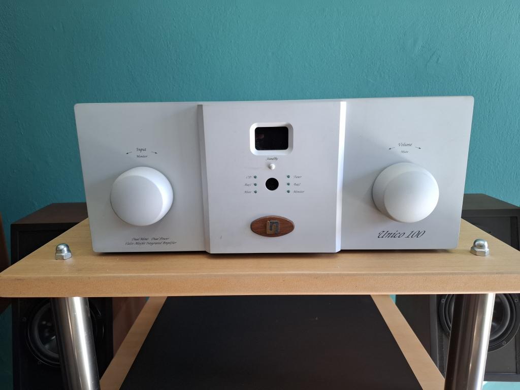 Selling my Unison Research Unico 100 Hybrid Valve Integrated Amplifier in excellent working condition. It has had a very little use with less than 100 hours of total playtime! This Italian behemoth is one of the most enjoyable integrated amplifiers at this price range. It has a bold and big-boned presentation full of tonal colors. The Unico 100 is quite a beast, it weights a formidable 25 kilos and delivers a respectable 180 Watts from each of its dual mono channels. It is so musical that you hear the music and not the hi-fi!