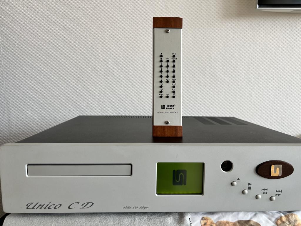 Wegen Systemumstellung auf Accuphase verkaufe ich meinen wunderbar klingenden Röhren-CD Player Unison Research Unico CD ( bitte nicht mit dem Unico CD Primo vergleichen. Der Primo ist eine abgespeckte Version). Der Player ist optisch neuwertig und technisch in einwandfreiem Zustand. Die teure Holzfernbedienung (Preis ca. 250€) gehört mit zum Lieferumfang. Gern anschauen und probehören vor Ort. Versand auf Risiko des Käufers auch möglich. Der Preis ist im vernünftigen Rahmen verhandelbar.