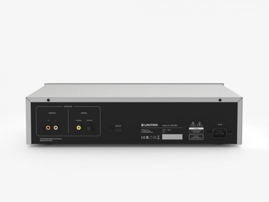 Die patentierte Lösung von Unitra ermöglicht das Ein- und Ausschalten des Geräts mit dem automatischen Kippschalter oder mit der Fernbedienung. Das einzigartige hintergrundbeleuchtete CD-Ansichtsfenster fügt sich nahtlos in das analoge Erscheinungsbild des Geräts ein.