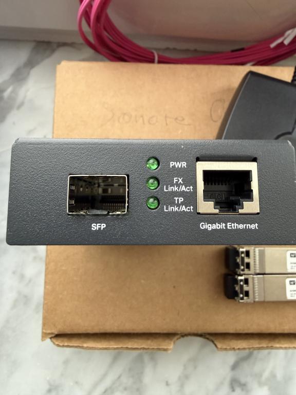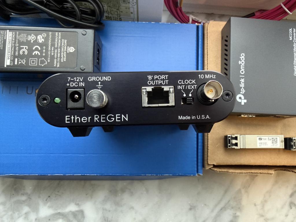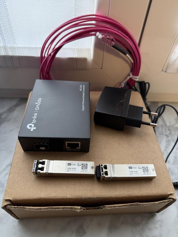 I'm selling my second kit for connecting an audiophile network switch with a 5-meter OM4 fiber optic cable. The switch comes with a compatible 12V power supply, two SFP modules, and a media converter to connect to the router via LAN cable. The Etheregen switch has an input for the SFP module and does not require a second media converter. Everything is tested and in excellent cosmetic condition. This system galvanically isolates the streamer from the router for the lowest possible noise during playback. The fiber optic cable can be replaced with a shorter or longer one at a minimal cost.