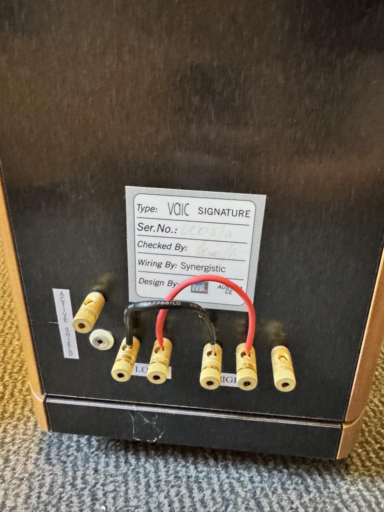 Zum Verkauf steht ein Paar VAIC Signature Standlautsprecher aus der ersten Serie (ca. 2000). Diese Serie wurde noch mit hochauflösendem Ribbon-Hochtöner gefertigt, bevor VAIC auf Keramik-Domes umstieg – weltweit existieren nur wenige Paare.