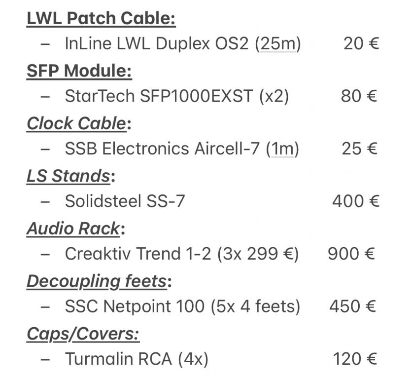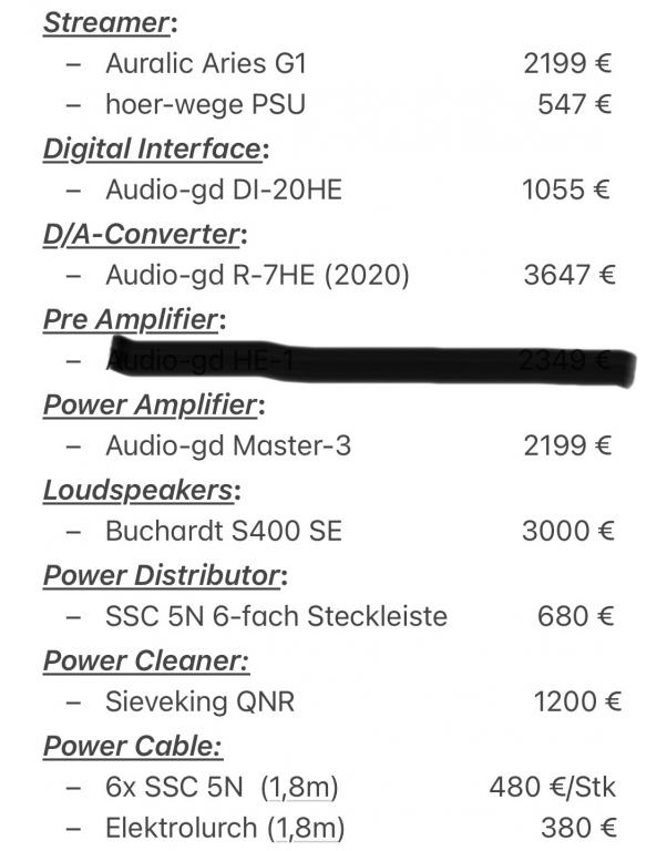 Wegen Systemwechsel biete ich mein Setup an, bestehend aus Buchardt Audio, Audio-gd und Auralic. Komponenten mit jeweiligen Neupreisen in Bild 2-4.