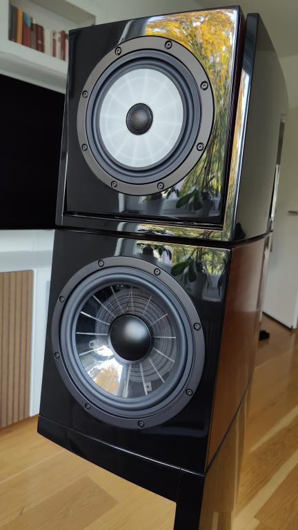 A pair of Vienna Acustics Kiss loudspeakers are available. They are in like-new condition, without any scratches or signs of use. Original packaging is included, but due to the speakers' weight and size, shipping is unfortunately not possible.
