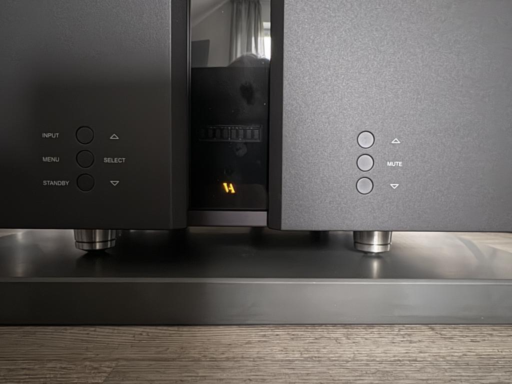 Der Verstärker funktioniert einwandfrei und hat als Upgrade Stillpoint Ultra SS Gerätefüße. Die Originalverpackung, Fernbedienung und Unterlagen sind vorhanden.