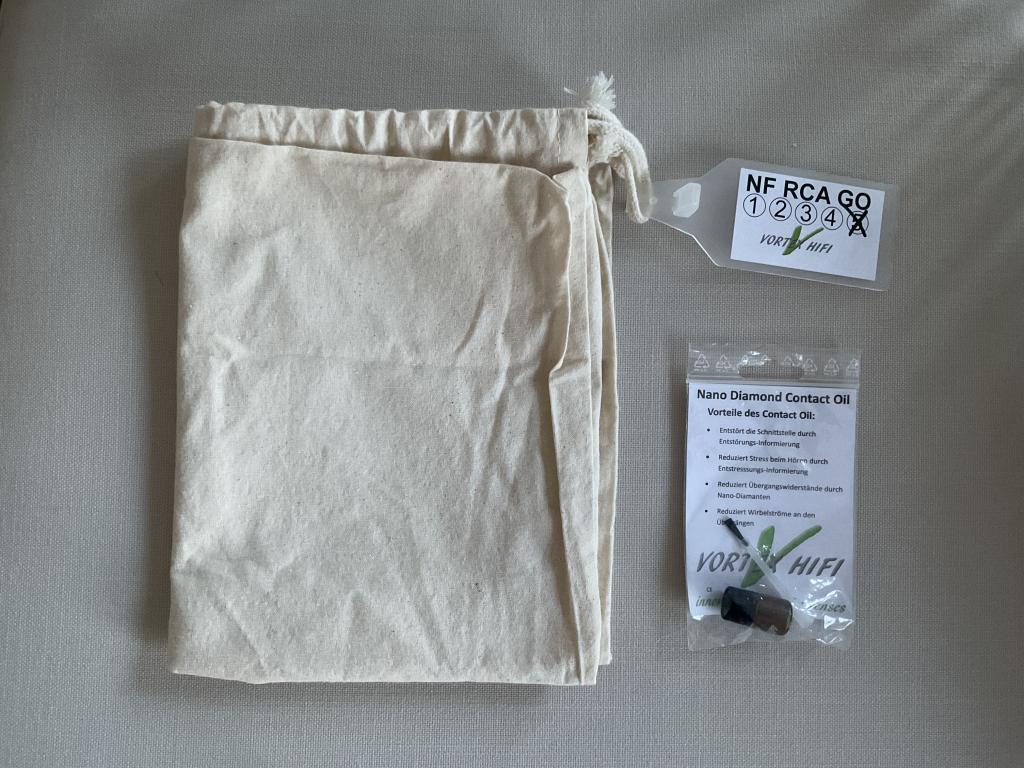 Verkaufsumfang: Vortex HiFi NF5 RCA GO2 Diamant - 1,2 Meter, Originalstoffsack und ein ungeöffnetes Nano Diamond Contact Oil.