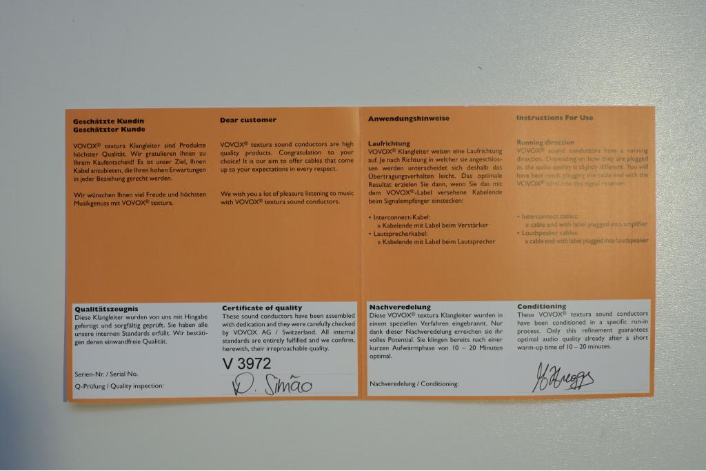 Durch hunderte Vergleichstest haben wir genaue Kenntnisse über die Klanglichen Eigenschaften gewonnen und sind nach wie vor überzeugt von der ausserordentlichen Qualität der VOVOX Produkte.
