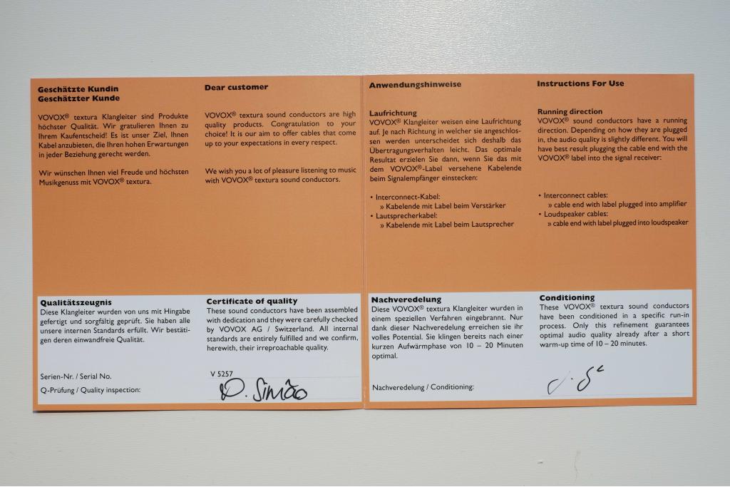Durch hunderte Vergleichstest haben wir genaue Kenntnisse über die Klanglichen Eigenschaften gewonnen und sind nach wie vor überzeugt von der ausserordentlichen Qualität der VOVOX Produkte.
