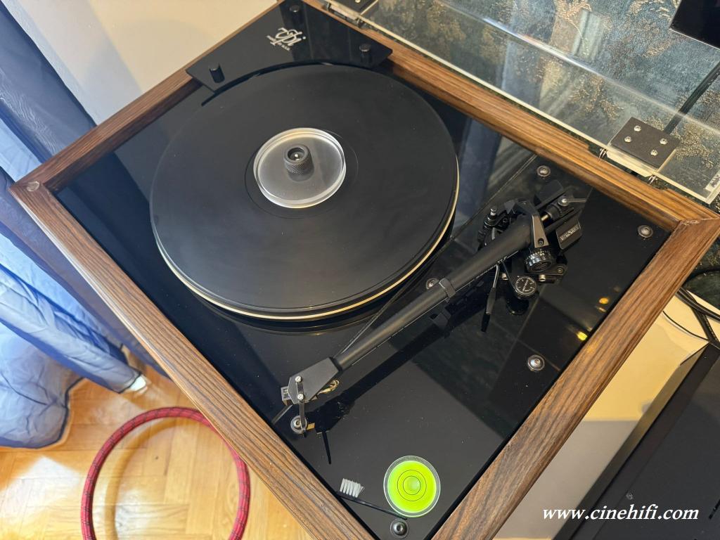 Extraordinary analog system composed of a VPI with an external power supply, an SME V, and a Koetsu Black. The plinth is custom-made in solid African wood by a specialized cabinetmaker. The original packaging for the SME and Koetsu remains. Includes VPI manuals. The turntable has non-original custom packaging.