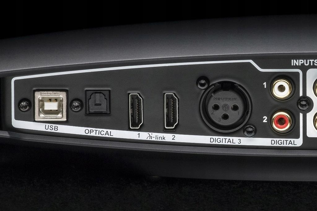 Digitale Audio-Eingänge: 2x koaxial S/PDIF (RCA), 1x optisch Toslink, 1x USB, 2x Wadia Link (HDMI), 1x AES/EBU