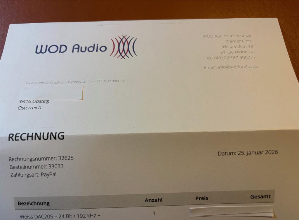 Die Rechnung von WOD Audio vom Januar dieses Jahres lege ich bei.