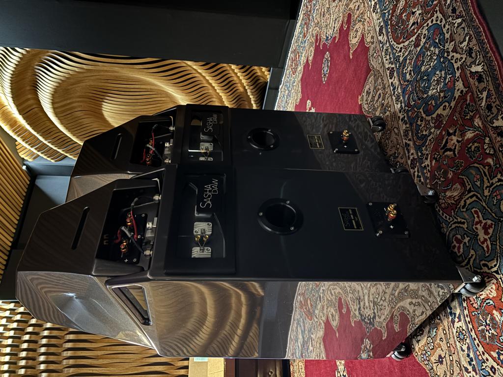 available, stunning, Wilson audio Sasha Daw speaker model Galaxy grey finish in combination with black covers and accessories, purchase invoice available on 02 2022, single owner used in a non-smoking environment, in aesthetic and functional conditions equal to new complete with their original box, manuals and accessories, a product that needs no introduction both for the prestige of the brand but above all for the wonderful sound performances, indulgent with the amplifications and with the environment it will take you into the magical world of Wilson sound characterized by a surprising dynamic with solid, articulated bass, medium range, natural fleshy and high range with great resolution but never tiring without any excessive glare it will allow you to make long intimate and truly enjoyable listening sessions, all accompanied by extraordinary 3D, and extraordinary build quality, obviously if appropriately supported by partners of the same level, shipping throughout Europe.