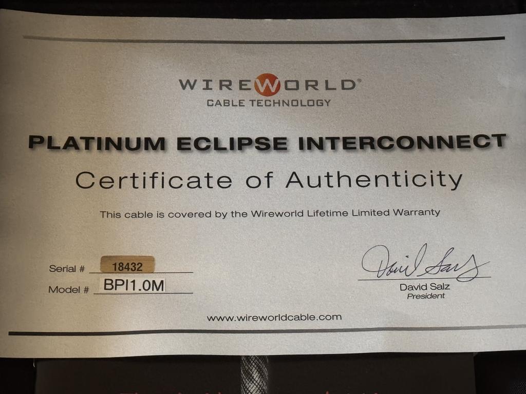 Wireworld Platinum Eclipse 8 balanced 1 meter XLR interconnect cable for sale in excellent condition for 1800 Euros plush shipping.