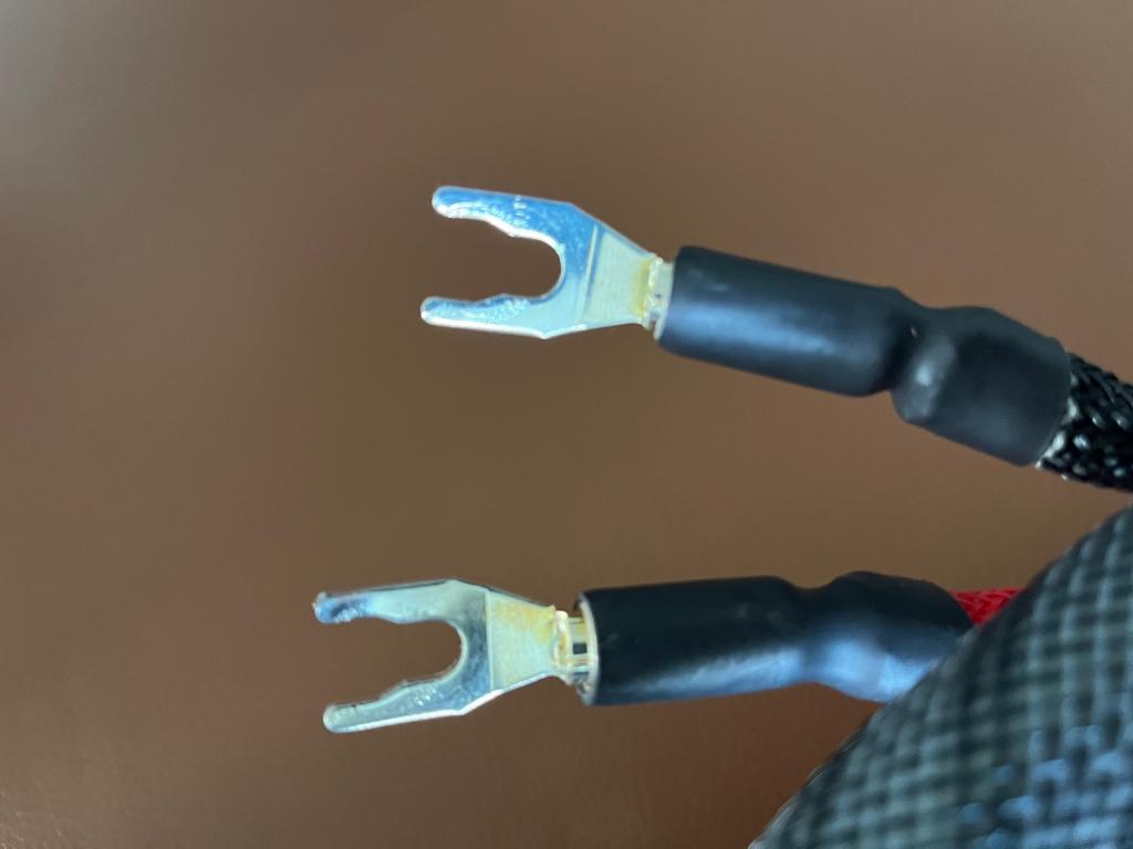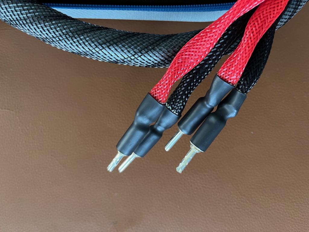 Excellent cables but two hard for the small space I have behind the speakers. No issue when the speakers are away from a wall. To avoid any tension replaced the originally supplies spades with original banana plugs which helped, but decided to replace it with softer cable.