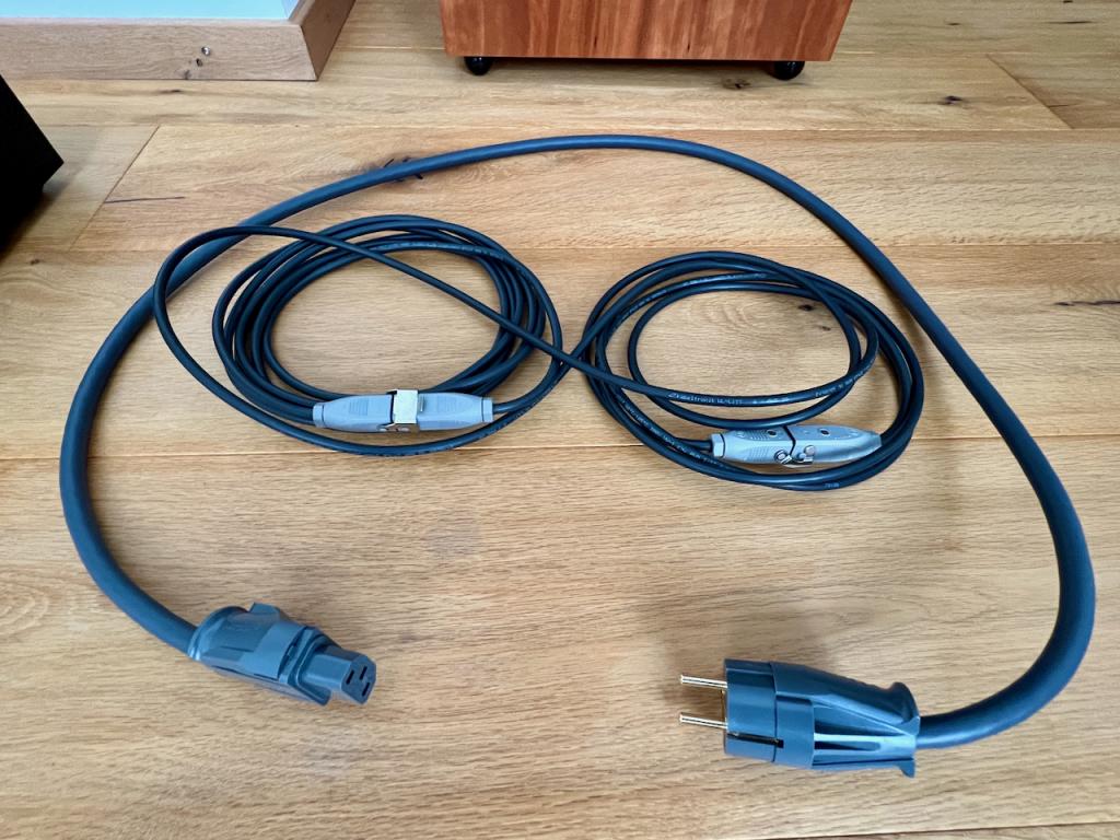 Die Gehäuseausführung ist in Kirschbaum. Das Set beinhaltet ebenso das aufpreispflichtige regelbare Netzteil mit Ampermeter. Das Netzkabel ist ein SUPRA LoRad Silber 1,5m. Am Lautsprecherterminal befinden sich WBT-Brücken. Eine Frontabdeckung sowie die Originalverpackung sind auch noch vorhanden.