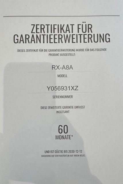 Guten Tag, wir verkaufen hier unseren Yamaha RXA-8A aus unserer Ausstellung mit 5 Jahren!!!!! Garantie. Wir besitzen weder die OVP noch die Bedienungsanleitung. Die Fernbedienung ist vorhanden.