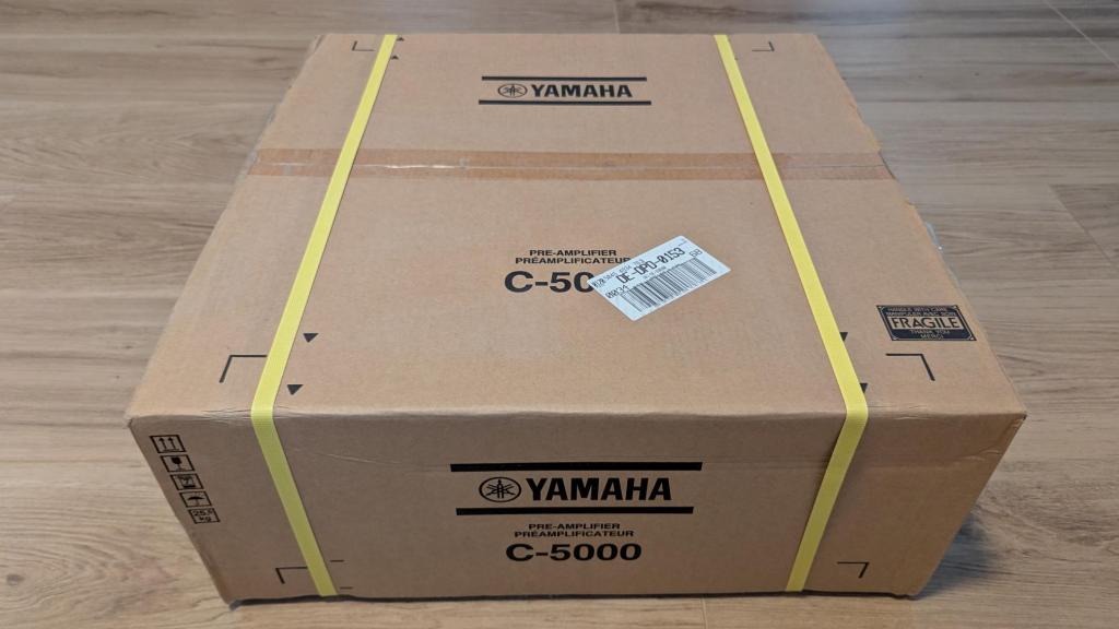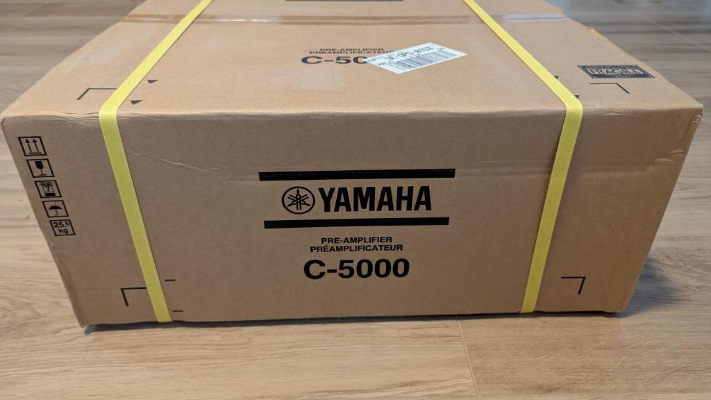 Der Yamaha C-5000 Vorverstärker befindet sich seit dem Kauf unangetastet in der ungeöffneten mit Packbändern versehenen Originalverpackung.