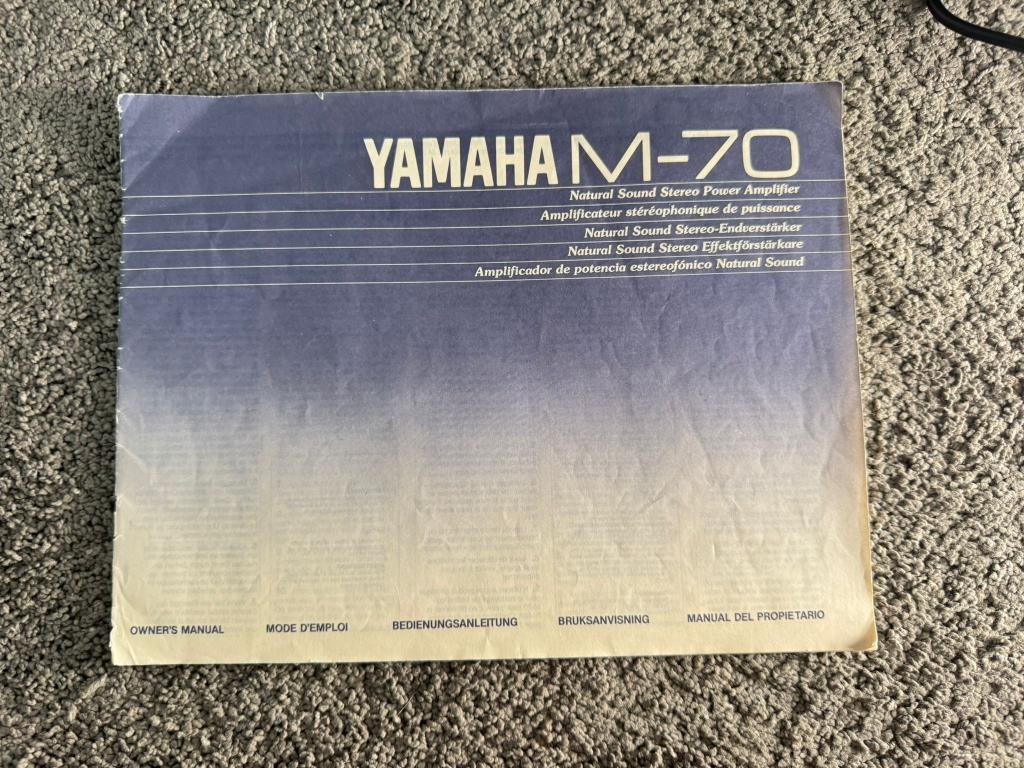 Im Lieferumfang enthalten ist: Yamaha M-70, Netzkabel, Anleitung und eine neutrale Verpackung.