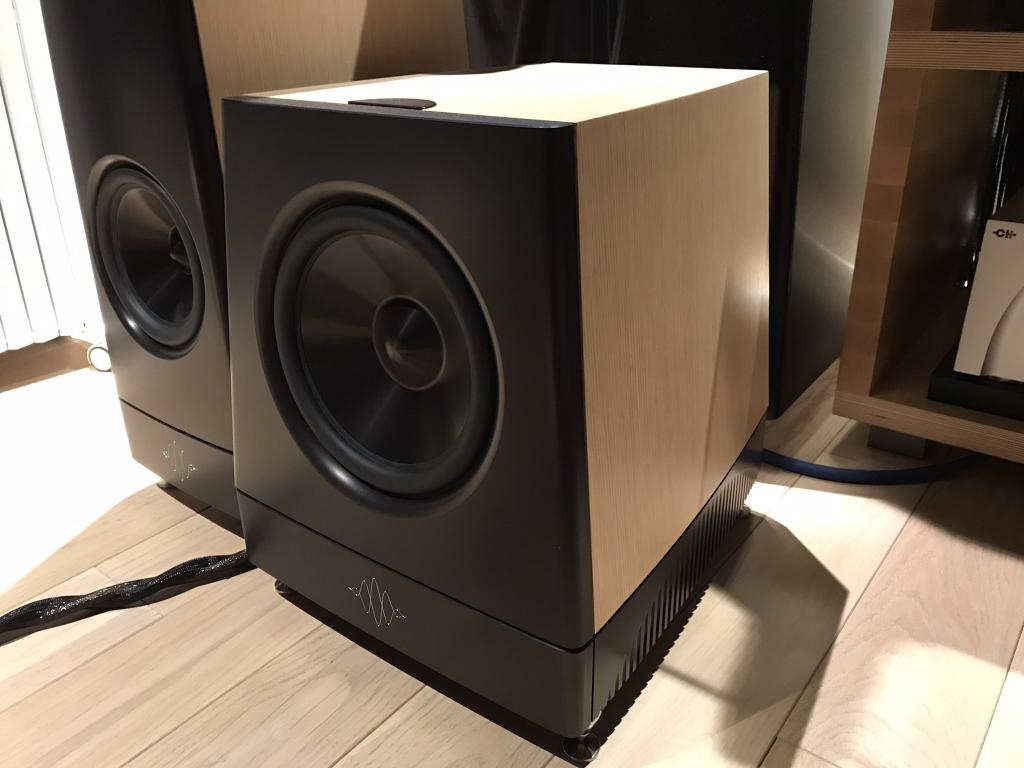 This is our YG Acoustics Descent demonstration subs. They are in immaculate condition with around fifty hours of usage in our showroom. They have never been moved. Finish is in Balanced Oak. All accessories and original packaging are available.