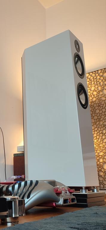 Diese Offenheit, Räumlichkeit, Klangfarbentreue, Schnelligkeit, Homogenität, Feinauflösung ohne zu sezieren und vor allem diese flirrende Mikrofeinstdynamik (welche die allerfeinsten Strukturen der Musik wie kein anderer Lautsprecher offenbart) bot keine der anderen Weltklasseboxen. Besonders im Verbund mit dem aus dem vollen gefrästen, überragenden Metaxas and Sins Solitaire mit 5MHz Bandbreite. Der Nachfolger der Grand und Einstieg in einen Zellaton Lautsprecher mit offener Rückwand und dem einzigartigen Podszus Konushochtöner ist jetzt das Modell Stage welche dieselbe Hoch-Mittel und Tieftonbestückung hat (der Mitteltöner läuft ohne Frequenzweiche von 100Hz bis 8000Hz, der einzige Unterschied zur Stage sind 22cm statt 18cm Treiber im Tiefton und durch das etwas größere Volumen 100kg statt knapp 80kg Gewicht pro Stück) und welche mittlerweile 100000 Euro kostet da die Fertigung der Podszus Chassis in liebevoller Handarbeit geschieht und daher viele Wochen Zeit benötigt. Jedoch gefällt mir als Design-Fan die kubische Form der Grand deutlich besser als die etwas pummelige Stage. Aber über Geschmack lässt sich ja bekanntlich streiten.