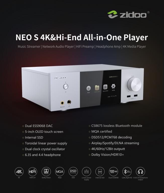 Zidoo Neo-S 4K High-End Media Player / Streamer der Spitzenklasse (UVP = 1499,- €)