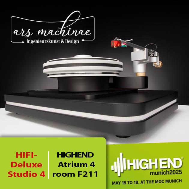 Erlebe den Ars Machinae Turntable live auf der HIGHEND München im Atrium 4, Raum 211 und auf der HIFI Deluxe im Studio 4, Mariott Hotel. Only silence and music!