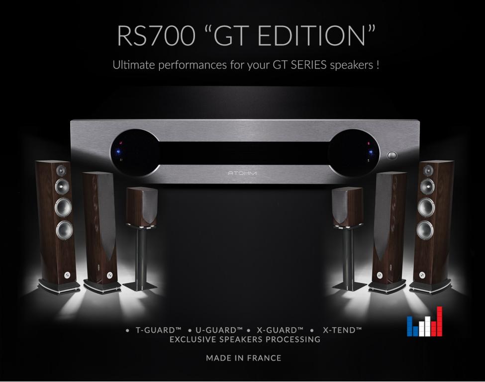 Aus den Top-Lautsprechern der Atohm GT-HD Serie werden durch den Betrieb mit dem RS700 GT-Edition Endverstärker quasi Aktive Lautsprecher.