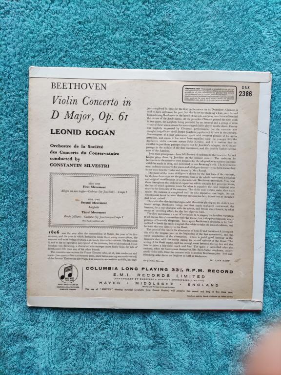eine der gesuchtesten Klassikplatten überhaupt. Columbia SAX 2386, 1. Pressung. Matrix Nummer: YLX 1052-1 (Seite A), YLX 1053-1 (Seite B). Plattenhülle excellent. Hörbarer Kratzer auf Seite 1 zwischen 7:30 und 8:15. Leichte Störung am Ende von Satz 2 (B- Seite), ansonsten ist der Klang perfekt, kaum Störgeräusche, keine Verzerrungen.